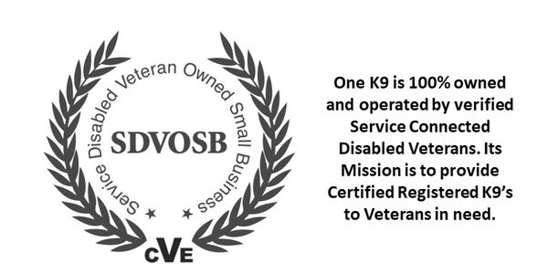 One K9 is 100% founded and operated by Service Connected Disabled Veterans working to Prevent Veteran Suicide. Our Mission is prevent veteran suicide and provide Trained- Certified Service K9's to Disabled Veterans in need.